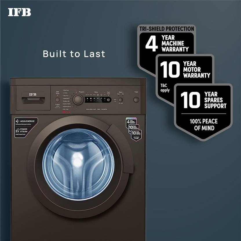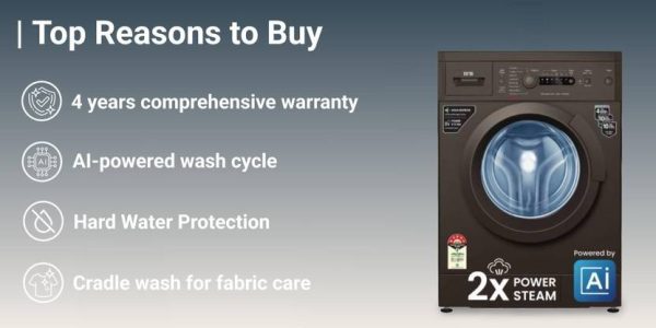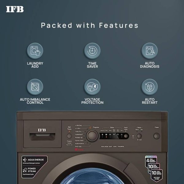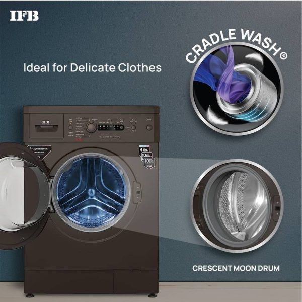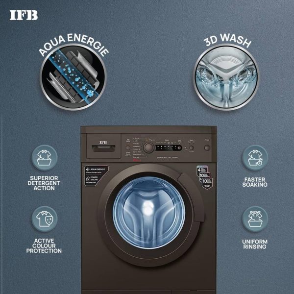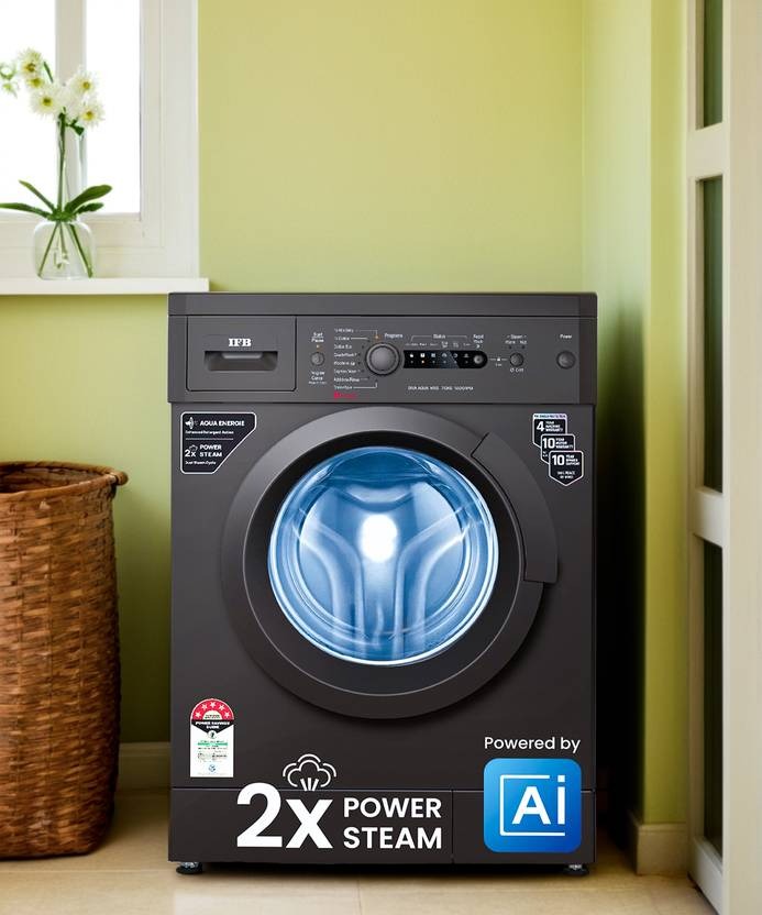 This IFB 7 kg Fully Automatic Front Load washing machine with AI technology is made for your comfort. It is gentle on the clothing while using a neutral network-based algorithm to determine the load, fabric type, and programme to ensure an efficient wash cycle. This washing machine’s Power Steam function softens the cloth while removing stains and bacteria. With its excellent detergent action, this washing machine employs the Aqua Energie function to preserve the colour of the clothes. Thanks to the Cradle wash function, which employs a gentle drum action to remove difficult stains while also shielding the clothing from harm, you can be sure that the wash cycle will be effective.